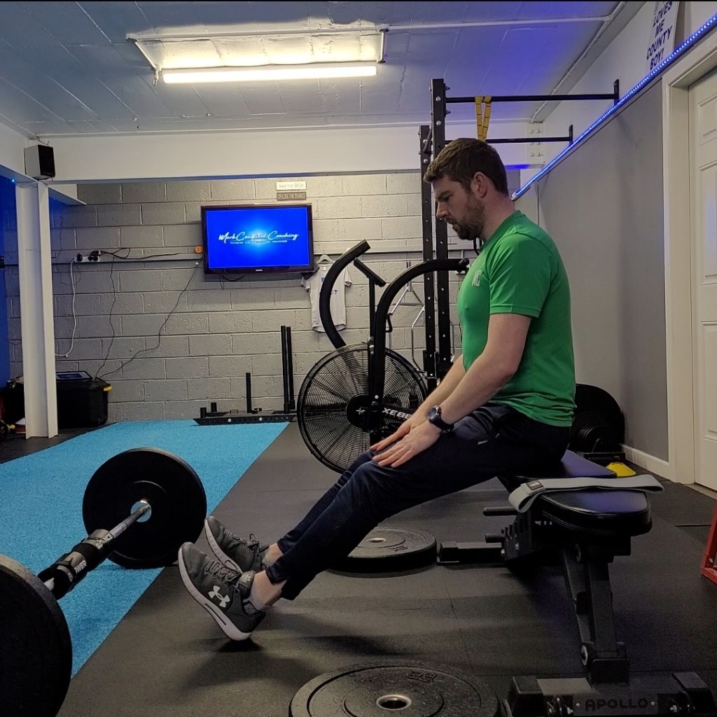Step 1: Sit on a bench with your thighs flat and knees at 90⁰Step 2: Extend your legs until knees are just off straight and heels are on the floor.Step 3: Support your weight with the leg that will be on the bench first for the upcoming setStep 4: Shift your weight onto the front foot and stand up from the bench.Step 5: Place your back foot onto the bench.Step 6: Perform your set of Bulgarian Split Squats
